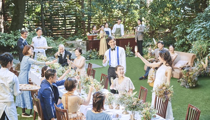 美しい芝生と木々に囲まれたガーデンセレモニー